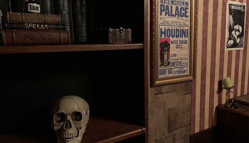 Het is het jaar 1936. Volgens de legende zoeken mediums ieder jaar op 31 oktober contact met ’s werelds bekendste ontsnappingskunstenaar HARRY HOUDINI. Hij zou een codeboek hebben achtergelaten met daarin de geheimen van al zijn ontsnappingstrucs. Op uitnodiging van zijn vrouw Bess Houdini betreden jij en je team Cryptologen het geheime Huis van HOUDINI. Lukt het jullie om het verloren codeboek terug te vinden en binnen 60 minuten weer te ontsnappen of zal de geest van HOUDINI terugkeren en jullie niet meer laten gaan…